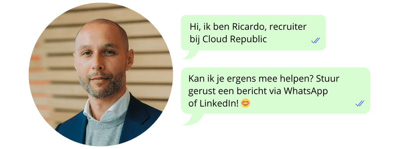 Bij Cloud Republic is er veel aandacht voor kennisdeling, vooral op de vrijdag, onze vaste kantoordag. Daardoor is er veel feeling met het bedrijf. Met name de sfeer is erg prettig. Het is een gezellige en open organisatie. Je wordt niet afgerekend op cijfers. Er is aandacht voor de mens en dat voel je.